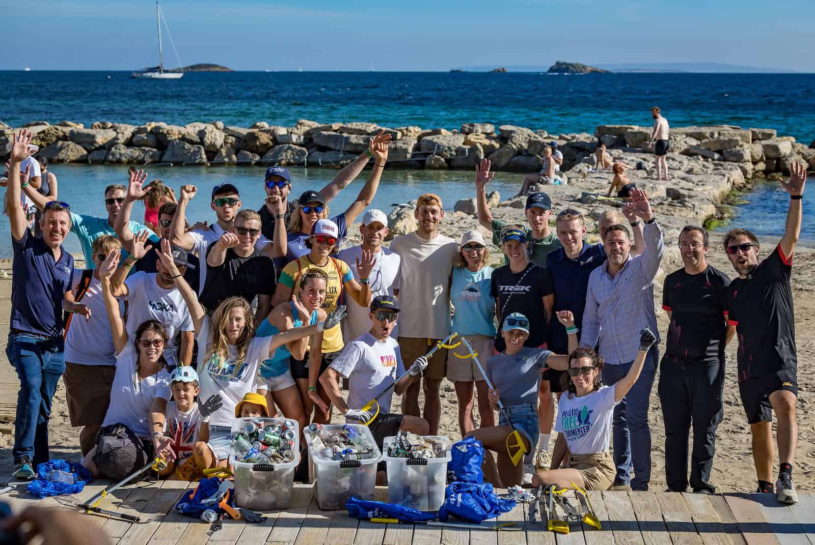 Ibiza, Spain: T100 triathletes took time out from their preparation for the Ibiza T100 Triathlonย to take part in a beach clean on Figueretas Beach this afternoon.